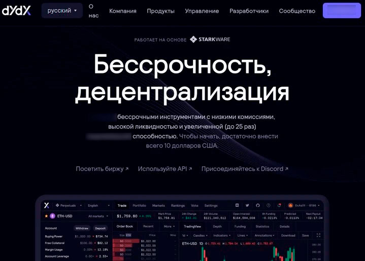 В 2017 году команда программистов из США запустила децентрализованную биржу, ориентированную на сложные финансовые инструменты. Этим DyDx отличается как от стандартных CEX платформ, так и от других DEX, предлагающих спотовую торговлю. На площадке активно используются деривативы и маржинальный трейдинг.