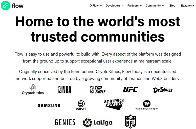 Проект, который создали Dapper Labs, разработчики самой известной игры на основе NFT — CryptoKitties. Они спроектировали блокчейн для запуска смарт-контрактов и децентрализованных приложений. Основная причина разработки — низкая скорость сети Ethereum, на котором реализована игра CryptoKitties.