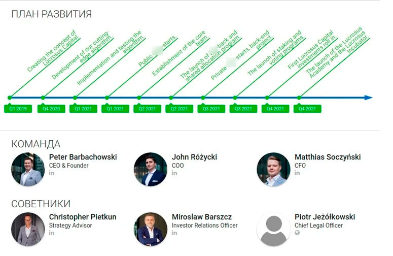 | Команда | От разработчиков зависит, сумеют ли они не просто создать продукт, но и развивать его, исправлять ошибки, продвигать сеть в медиа. |