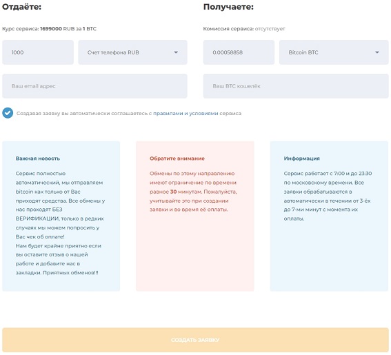 Особенности обмена BTC через мобильного оператора