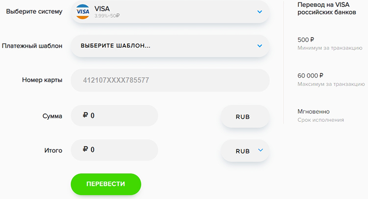 - Ввести номер карты и указать сумму. Минимальная — 500 рублей.
