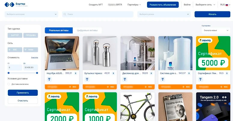 Платформа объединяет продавцов и покупателей токенизированных активов. Первые могут открывать собственные магазины в пространстве Web3 и продавать реальные товары в виде NFT. Barter Smartplace предлагает обширный набор инструментов для перевода физических активов в цифровую форму, их продвижения и проведения сделок.