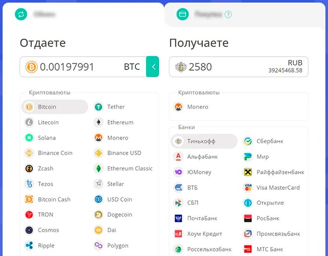 Для конвертации активов по направлениям формата «российский банк — криптовалюта» требуется вводить следующую информацию:
