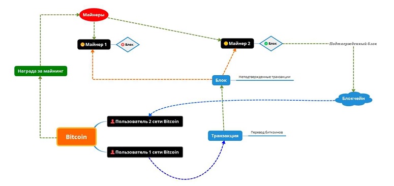 Из-за того, что блокчейн децентрализован, у него нет единого сервера, как у банка, который мог бы самостоятельно поддерживать работоспособность ПО. Эту функцию выполняют майнеры. Они подключают оборудование к системе и проверяют транзакции, создавая и закрывая блоки.