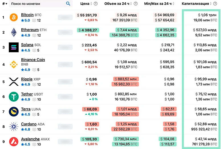 Этот критерий отражает стоимость выпущенных монет в фиатных деньгах. Иначе говоря, капитализация ― общая сумма, которую необходимо потратить на покупку всех монет криптовалюты. Параметр показывает популярность проекта. Чем выше капитализация, тем косвенно больше крупных инвесторов вложили средства в актив. Новичкам рекомендуется брать с них пример.