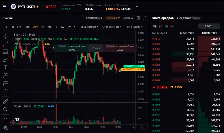 С начала торгов криптовалюта PYTH проявила себя как высоковолатильный актив. Сначала цена стремительно поднялась с $0,3 до $0,35, а затем также быстро опустилась до $0,28. На некоторых биржах цена падала до $0,06, на других — достигала максимума на уровне $0,54.