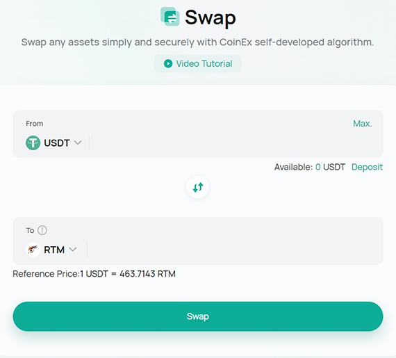 Чтобы получить Raptoreum, нужно сначала приобрести другую криптовалюту (USDT, BTC, LTC, DASH, INR). Ее можно купить за фиатные деньги на площадке со встроенным P2P-сервисом. Затем следует отправить монеты на криптобиржу, которая поддерживает торговлю RTM. На ноябрь 2022 года криптовалюта доступна на 9 CEX (CoinEx, Txbit, qTrade и других). Алгоритм покупки на примере CoinEx следующий: