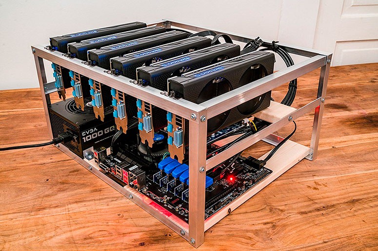 Оборудование для добычи криптовалют — это компактно собранный компьютер с видеокартами. Небольшие фермы работают на 6-20 графических процессорах (GPU). Крупные состоят из сотен и тысяч устройств. Стандартный корпус не может вместить комплект видеокарт. Поэтому их помещают в риг. Это стойка для хранения 6 GPU.