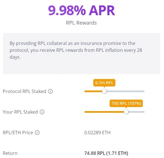 Для создания узла нужно заблокировать минимум 17,6 ETH (16 монет + 10% в токене RPL). Максимум можно внести 150% от ставки. Это дополнительная страховка от злоупотреблений валидаторов. Если мини-пул потерпит убытки, их возместят за счет залоговых монет.
