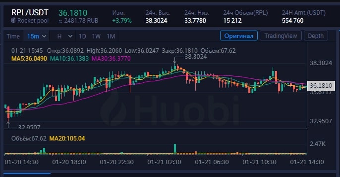 Актив не доступен для торговли в шорт, поэтому спекулятивные сделки с ноября 2021 года по июнь 2022 приносили убытки. Отбить их удалось осенью 2022 года — монета выросла более чем в 3 раза (с $8,89 до $34,02). В январе 2023 года RPL консолидируется в диапазоне $9-34.