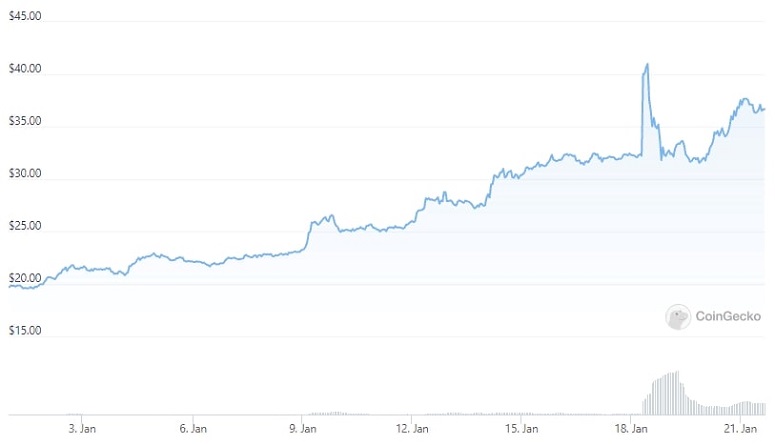 В начале 2023 года монета консолидируется после снижения курса. В январе она торгуется за $34 (на 42% ниже максимального значения). Аналитики считают проект перспективным, но котировки во многом зависят от инвестклимата. Участники рынка ждут заседания ФРС в феврале. Если регуляторы продолжат повышать ставку, это может оказать негативное влияние на рынок криптовалют.