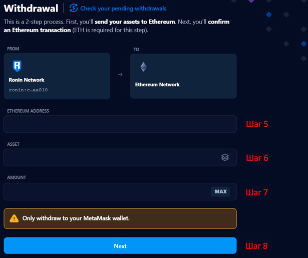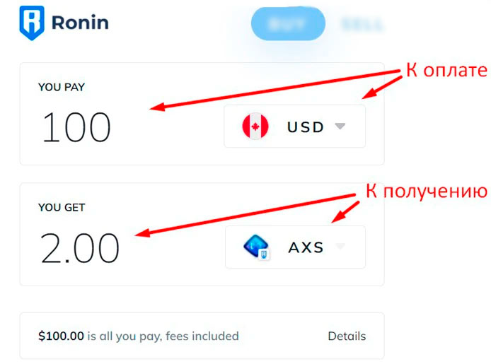 - Пополнение кошелька Ronin Wallet