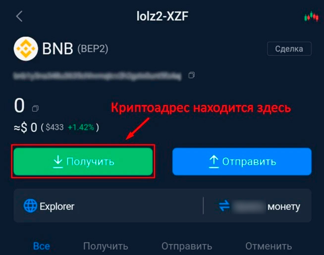 - Выбрать криптовалюту для просмотра транзакций и нажать на ее карточку.