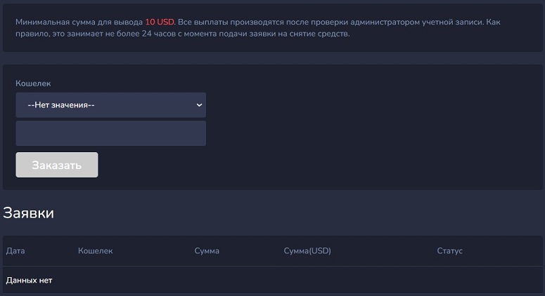 Партнерские награды начисляют в долларах в течение суток после подтверждения обменов рефералов. Деньги можно вывести на криптовалютный кошелек и банковскую карту. Минимальная сумма — $10.