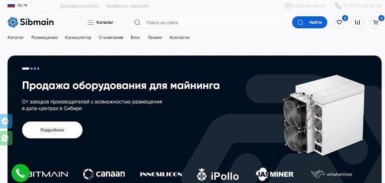 Подобрать майнер можно на сайте SIBMAIN. Полный каталог оборудования содержит современные модели Bitmain и Whatsminer.
