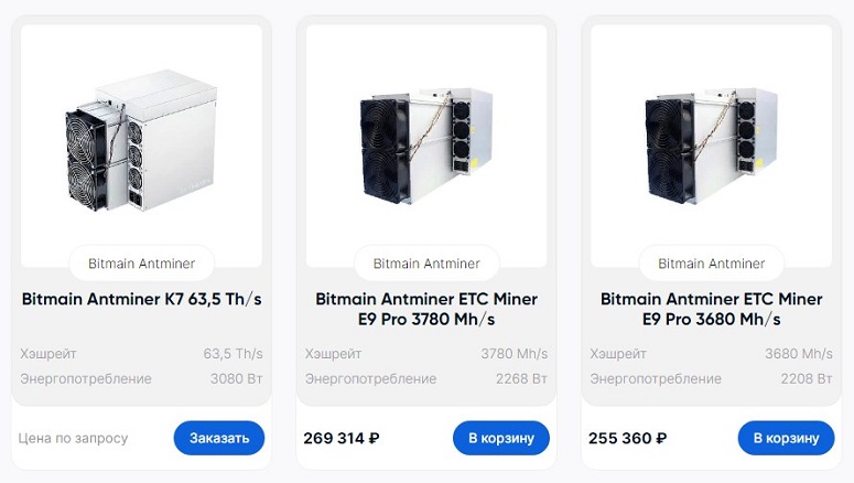 - Купить асики известных производителей (Bitmain, WhatsMiner). Оплата принимается в рублях и криптовалюте.