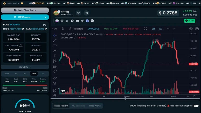Таким образом, на момент написания этой статьи, цена $SMOG достигла уровня в $0,2811. О таком повышении, опять же, сообщает портал DEXTools.
