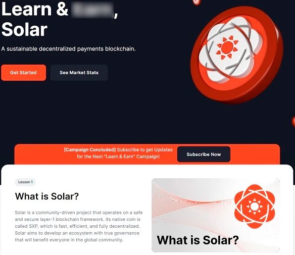 В 2022 году Solar совместно с популярным криптовалютным агрегатором запустили викторину — уникальный способ помочь участникам рынка узнать о проекте и получить токены SXP в качестве вознаграждений. Чтобы заработать монеты, пользователи должны были пройти короткий тест. Затем активы распределялись среди участников, которые правильно ответили на вопросы.