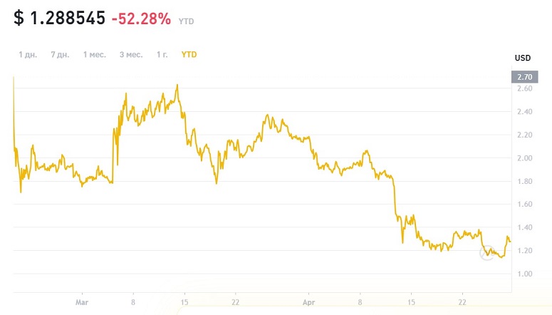 В марте курс частично восстановился. Высоко оценивая перспективы токена, инвесторы тем не менее не спешили покупать, ожидая более благоприятной цены ниже $2.