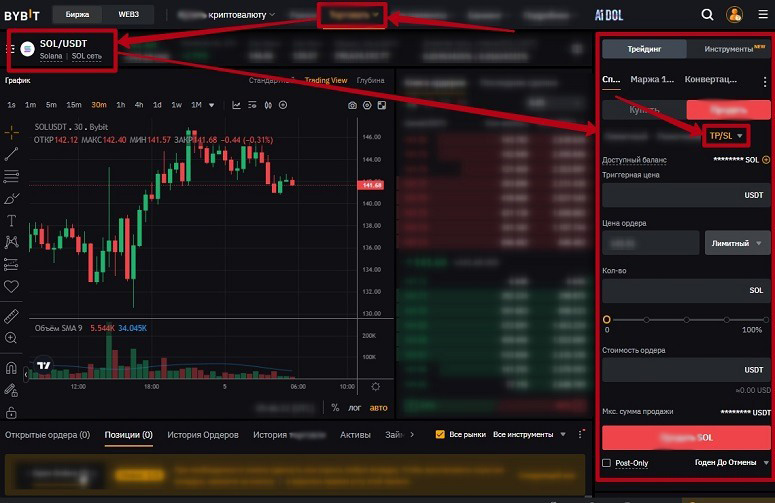 Описание, как ставить стоп-лосс на Bybit