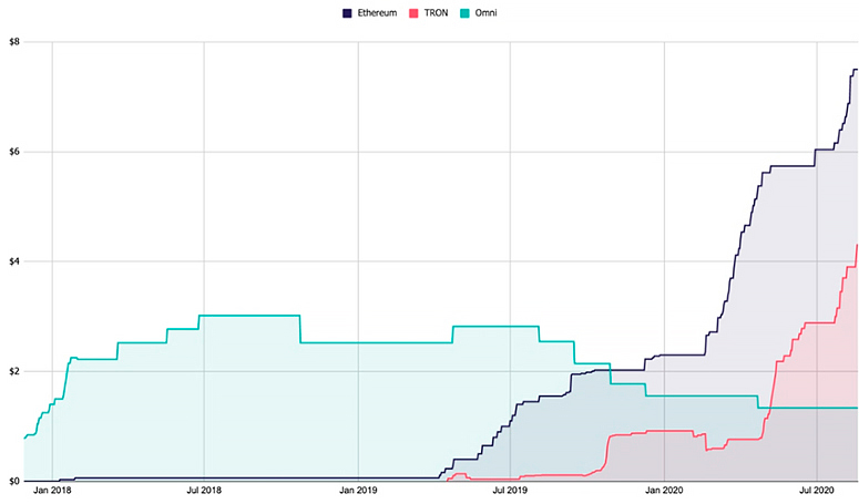 У проекта нет собственного блокчейна. Токены генерируются параллельно в нескольких сетях. Из-за этого у них разные стандарты: ERC-20, TRC-20 и так далее. Наибольшее количество токенов в августе 2021 года было сосредоточено в протоколе TRON.