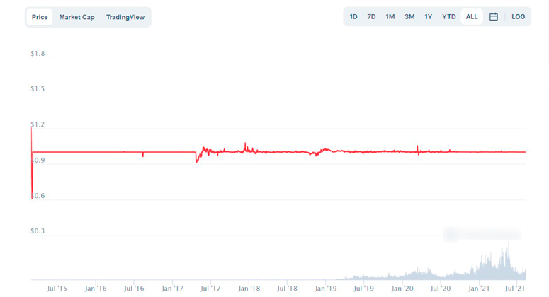 В отличие от высоковолатильных монет цена стейблкоина строго привязана к USD. Отклонения минимальны (менее 0,001%). Так что волнения на рынке, падение курса Bitcoin, новости и публикации в СМИ не влияют на цену.