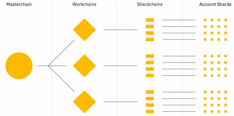 - Бесконечный шардинг. Под термином подразумевается разделение блокчейна на отдельные управляемые сегменты. За каждым из них закрепляется собственная нода. То есть одному узлу не приходится отвечать за верификацию всех транзакций в сети, а только за определенный уникальный набор. Скорость создания блока не зависит от объема, не формируется очередь, не повышаются комиссии.