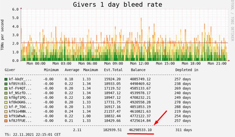 В ноябре 2021 г. действуют 10 контрактов PoW-Givers, за каждым из которых закреплено определенное количество монет. Они раздают их блоками по 100 коинов в каждом.
