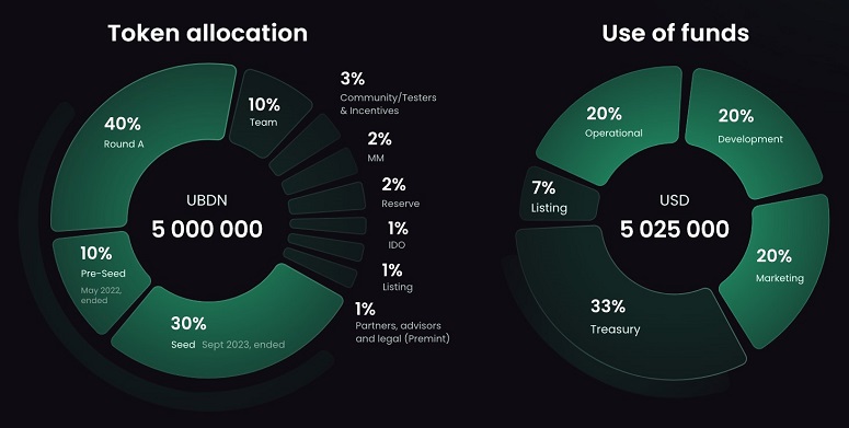 - Токен UBDN. Монета обеспечивает работу экосистемы и гарантирует держателям ежемесячные награды в UBD.