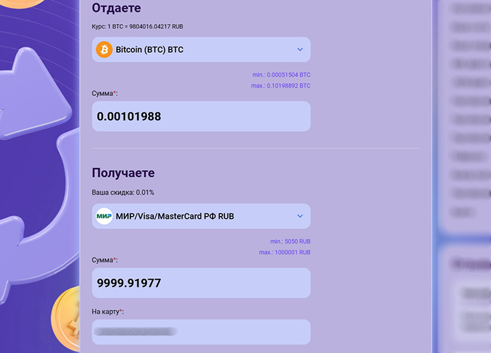 - Если сумма транзакции отличается от указанной в заявке более чем на 5%, сервис имеет право расторгнуть договор в одностороннем порядке. Средства будут возвращены за вычетом комиссии на перевод.