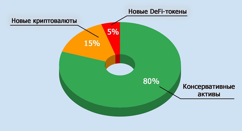 Проект может выглядеть перспективным, но успеха в будущем не принести. Причин этому несколько: разработчики не смогли воссоздать идею, конкуренты сделали похожий продукт за более короткий срок и другие. Поэтому стоит вкладывать в высокорискованные криптомонеты от 10 до 20% инвестиционного портфеля. Из-за популярности DeFi вероятность встретить бесперспективный проект вырастает. Рекомендуется выделить на капиталовложения данного типа не более 5%.