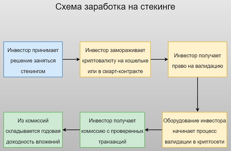 В 2022 году есть много методов пассивного заработка на криптовалютах. Одним из них является стейкинг виртуальных активов. Этот метод подразумевает временную заморозку вложений в криптокошельке или на депозитном смарт-контракте. Взамен инвестор получает определенную доходность, поскольку его доля монет включается в процесс валидации (проверки и подписания) новых транзакций и звеньев цифровой цепочки.