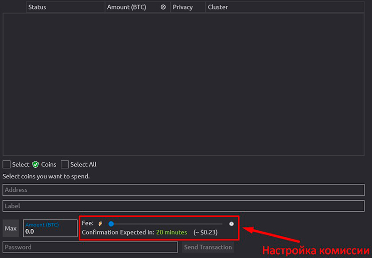 После девятого шага инициируемая транзакция попадает в сеть Bitcoin. В среднем обработка перевода занимает столько времени, сколько рассчитывает алгоритм программы. Например, если пользователь укажет самый высокий операционный сбор, транзакция будет подтверждена примерно за 20 минут.