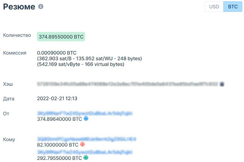 После седьмого шага загрузится страница с подробной информацией об отслеживаемом переводе. Однако стоит учитывать, что не каждый блокчейн-обозреватель предоставляет клиентам полные публичные сведения. Это объясняется политикой сервисов мониторинга о сохранении анонимности участников криптосети Биткоин.