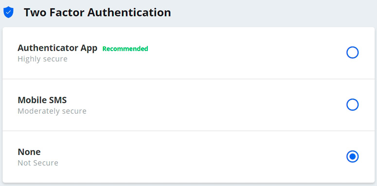 Всем пользователям биржи предлагают повысить уровень безопасности учетной записи, подключив Google Authenticator или SMS-подтверждение при входе. У каждого есть право отказаться от обоих вариантов защиты аккаунта, оставив только пароль, но это слишком рискованно.