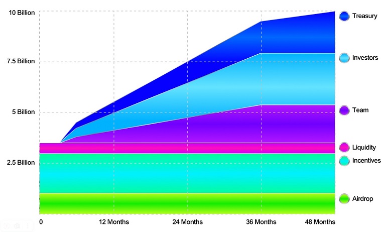 Разблокировка токенов происходит постепенно. Она растянута на 48 месяцев. Это необходимо, чтобы сдерживать инфляционное давление и объем продаж на рынках.